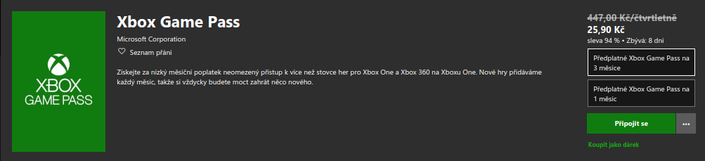 Update : https://www.microsoft.com/cs-cz/p/xbox-game-pass/CFQ7TTC0K6L8/0005?rtc=1&activetab=pivot:overviewtab