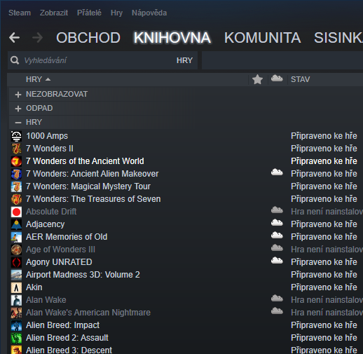 Hry, co hraju, mají zástupce na ploše. Do knihovny Steamu lezu jen tehdy, když něco instaluju. A mám to vyřešený.