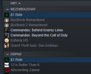To mas asi nejakou mentalni poruchu (OCD), kdyz ti to tolik vadi. Je to uplne dole a zabira to srolovany jeden radek, ale tobe kvuli tomu pukne hlava. Ja tam mam takovych her, ze bych se zcvoknul z toho to rozrazovat do nejakych oddilku, a navic je to uplne k nicemu (spis to musi byt jeste opruz hledat hru ve stovce zalozek a nevedet presne do ktery jsi to zaradil).