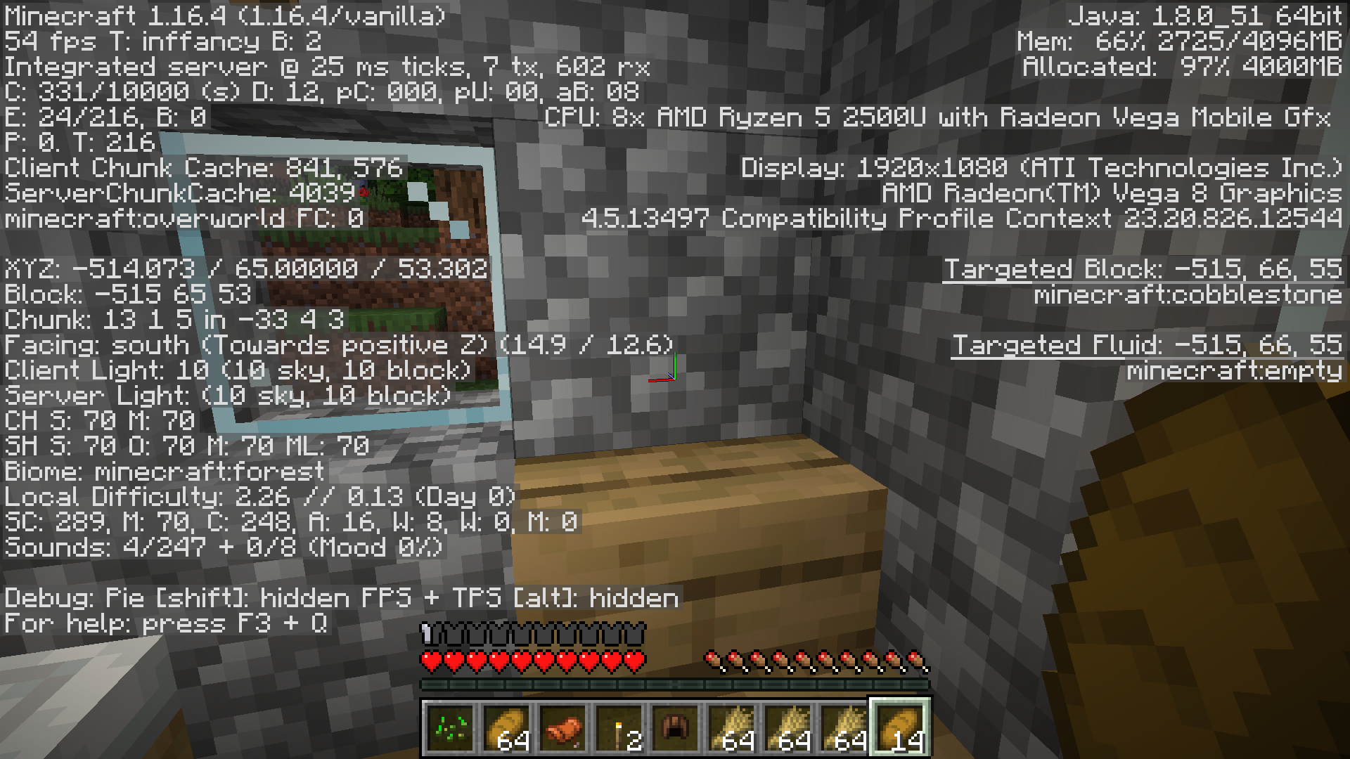 Díky za snímek. Podle něj ti MC běží sice na 54 FPS, ale přes integrovanou grafiku (Vega 8). Takže bych doporučil vyzkoušet přepnout na dedikovanou kartu.