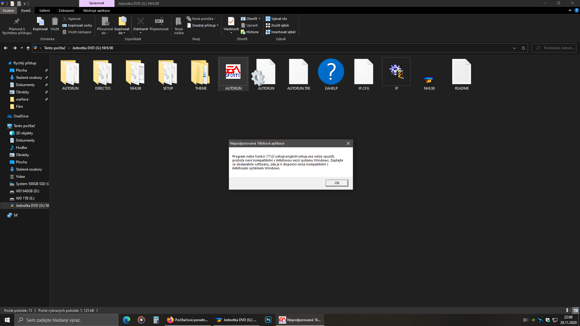 Mě to nejde ani spustit,chce to 64 instalátor...tam je jen 32..