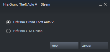 Pri spustení cez "steam klienta" mám priamo možnosť voľby "Hrát hru Grand Theft Auto V" alebo "Hrát hru GTA Online"