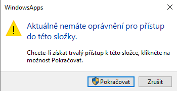 Jenze nestaci zmenit opravneni te slozce WindowsApps, musis zmenit opravneni i tem slozkam pod ni, a…