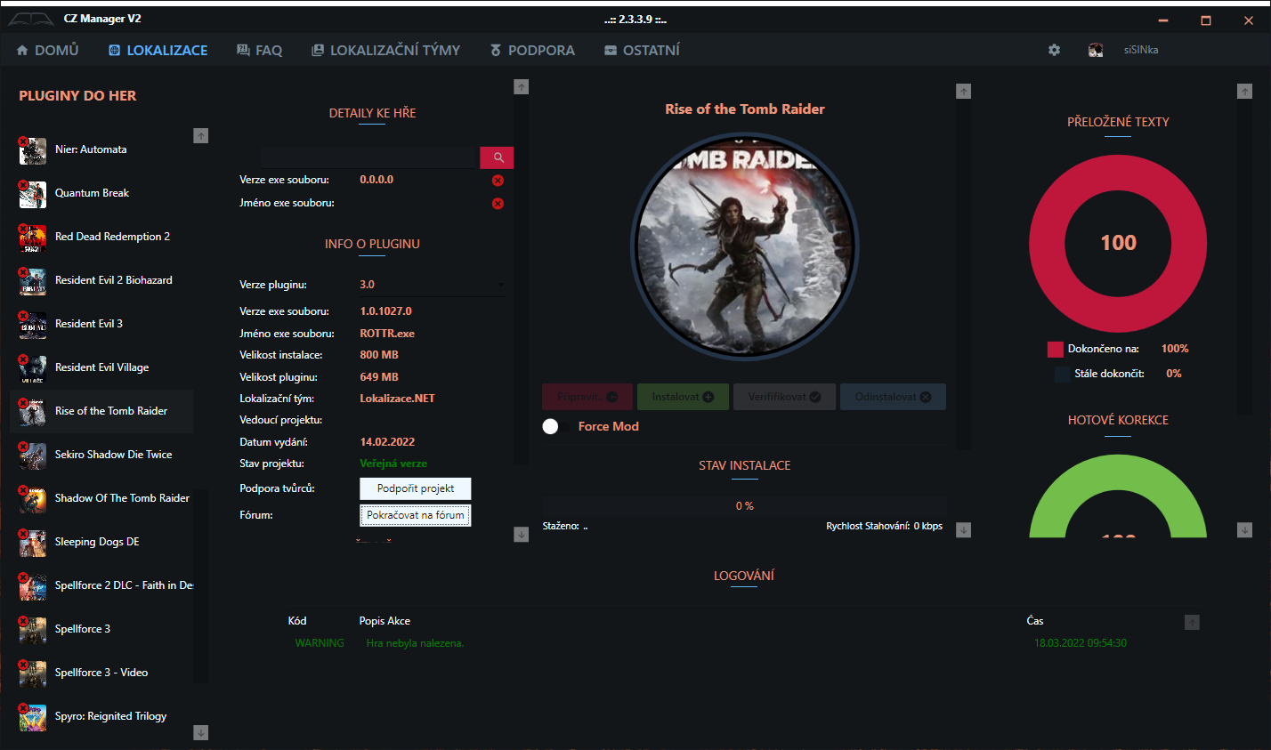 Funkční čeština na poslední verzi poptávané hry je venku od 14.2.2022. Ono to nemusí být hned; když autoři vydají update, patch, DLC, když přibude spousta textů, za vteřinu ti to nikdo zadarmo neudělá, je potřeba čekat, až si na to překladatel udělá čas. Jako tvůrce a spolutvůrce různých překladů her dobře vím, o čem mluvím.