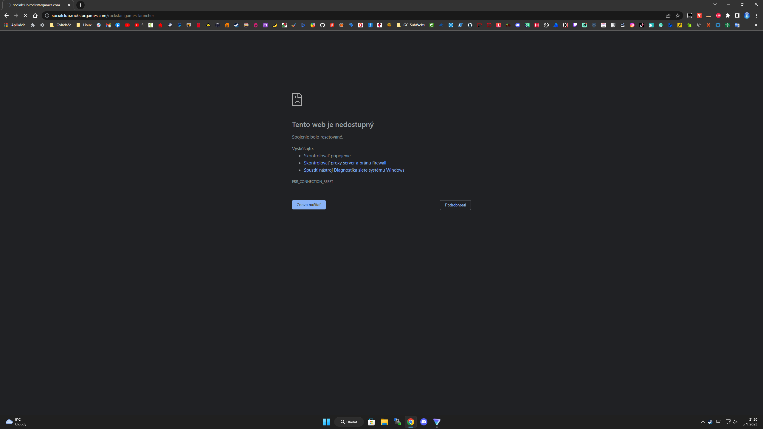 Keďže na byte máme dva internety (jeden môj, jeden majiteľa), tak som sa skúsil pripojiť na majiteľov internet a tam všetko funguje. Ale na mojom internete nefunguje nič (normálna stránka https://www.rockstargames.com/ funguje, ale všetko čo je pred názvom webu (napr. https://www.*.rockstargames.com/) nefunguje) ani launcher.